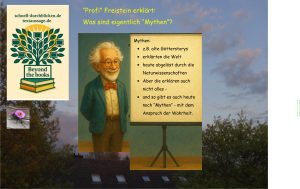 — - Wichtig ist also, dass so ein Mythos einen Anspruch auf Wahrheit enthält, was natürlich verschwindet, wenn jemand den ersten Blitzableiter erfunden hat. Da war der Obergriechengott Zeus schon längst Teil der Geschichte und die Naturwissenschaft erklärte das, was uns umgibt.