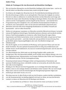 Da Schule ja die Aufgabe hat, Menschen bei der Persönlichkeitsentwicklung und bei der Berufsvorbereitung zu helfen, ist sie stark gefordert. Man kann ihre Aufgabe im zweiten Bereich vor allem so definieren: In welchen Bereichen werden Menschen noch lange und vielleicht für immer jeder Künstlichen Intelligenz überlegen bleiben. Denn diese hat nichts anderes als ihre Trainingsdaten und den Zugriff auf das Internet – und natürlich ihre Programmierung. Die ermöglicht es ihr, menschliches Kommunikationsverhalten zu simulieren, also nachzuahmen. Aber sie hat nicht die individuelle Lebenswelt eines Menschen und auch nicht seine einzigartige Kombination von Gefühl, Vernunft und Spontaneität – und vor allem Kreativität.