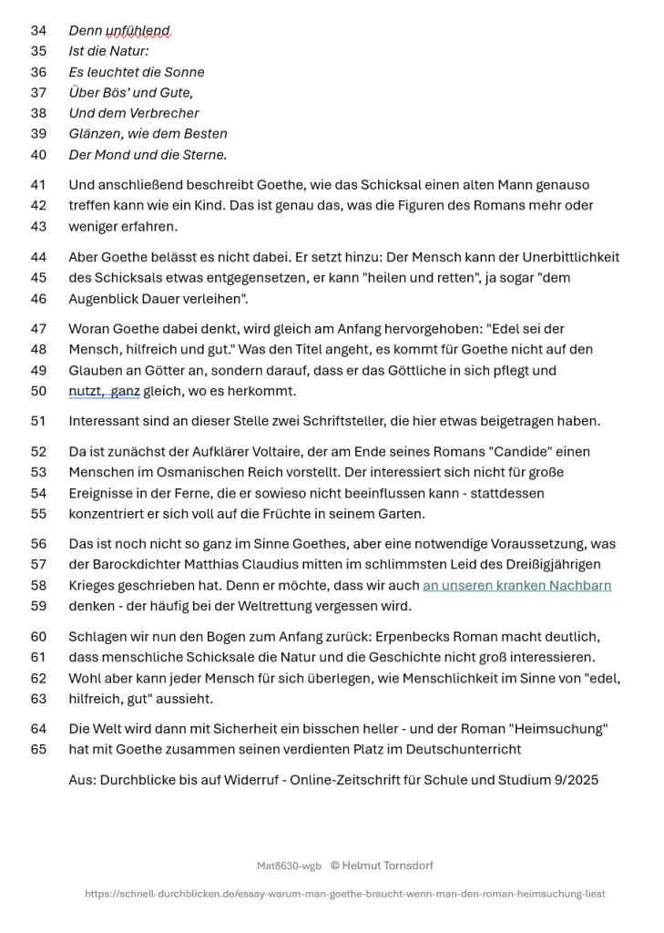 - Der Verweis auf Goethes Gedicht „Das Göttliche“ ist dann eine Möglichkeit, die damit deutlich werdende Lücke im Hinblick auf die Bedeutung und die positiven Möglichkeiten des Menschen zu füllen.