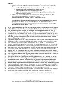 - Analysieren Sie den folgenden Ausschnitte aus dem Roman „Heimsuchung“, indem Sie