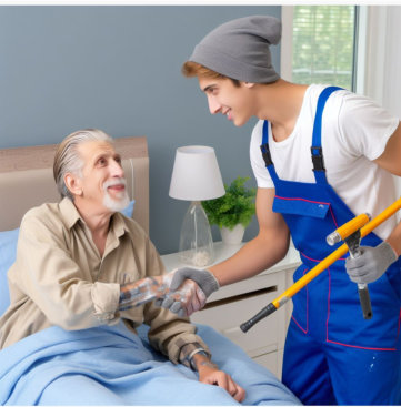 - Und jetzt muss er das Zimmer des alten Herrn streichen.
