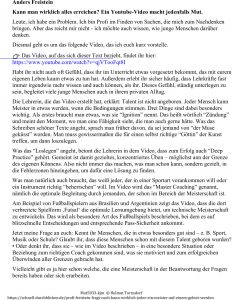 Was man natürlich auch braucht, das weiß jeder, der in einer Sportart vorankommen will oder ein Instrument richtig “beherrschen” will. Im Video wird das “Master Coaching” genannt, nämlich die optimale Begleitung durch jemanden, der schon im Bereich der Meisterschaft ist.